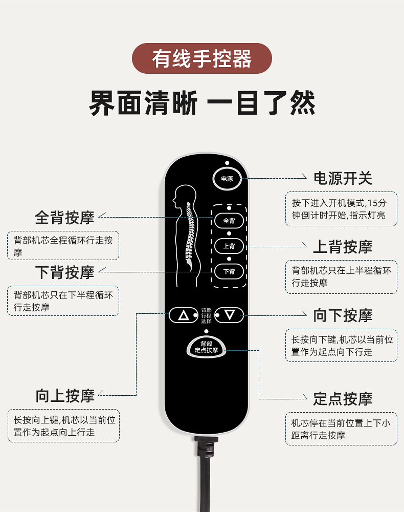 頸部:正反轉(zhuǎn)揉捏,上下可調(diào)節(jié)高矮適應(yīng)不同人。