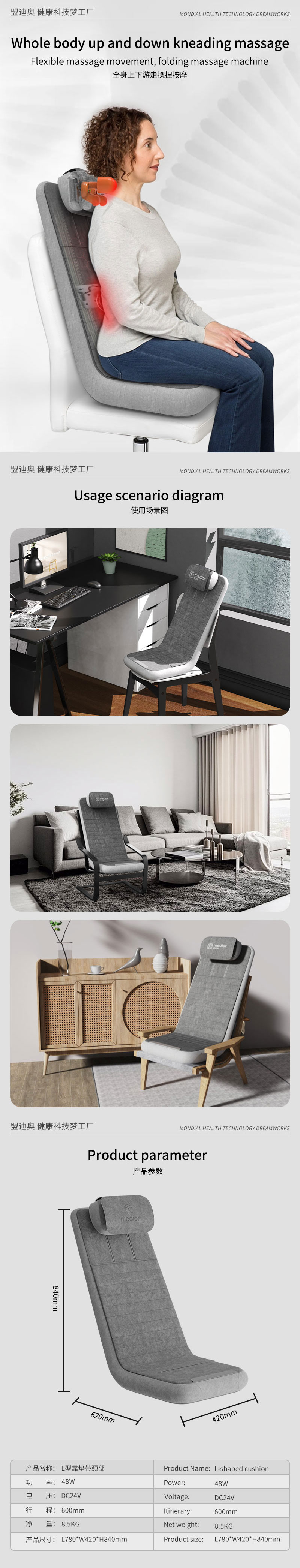 3、力度三檔調(diào)節(jié),定點(diǎn)按摩,腰背按摩、臀腿按摩、全背按摩模式選擇
