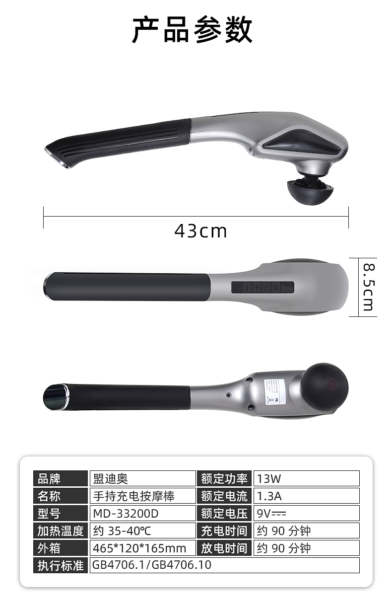 5. 12V 1A,2200maH,充電滿約2.0H,5檔力度,約90min.