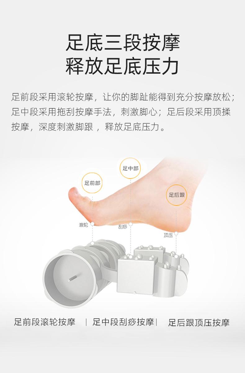 腳底 滾輪按壓(腳趾)、刮痧(腳底)、頂(腳后跟)按摩 (多模式,多強度)